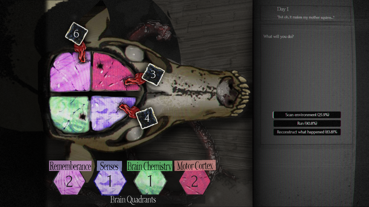 The game contains descriptions of violence, blood, gore and sounds thereof. Themes like loss of self, Ego death, invasion of the mind, and worming, writhing, gore, blood.